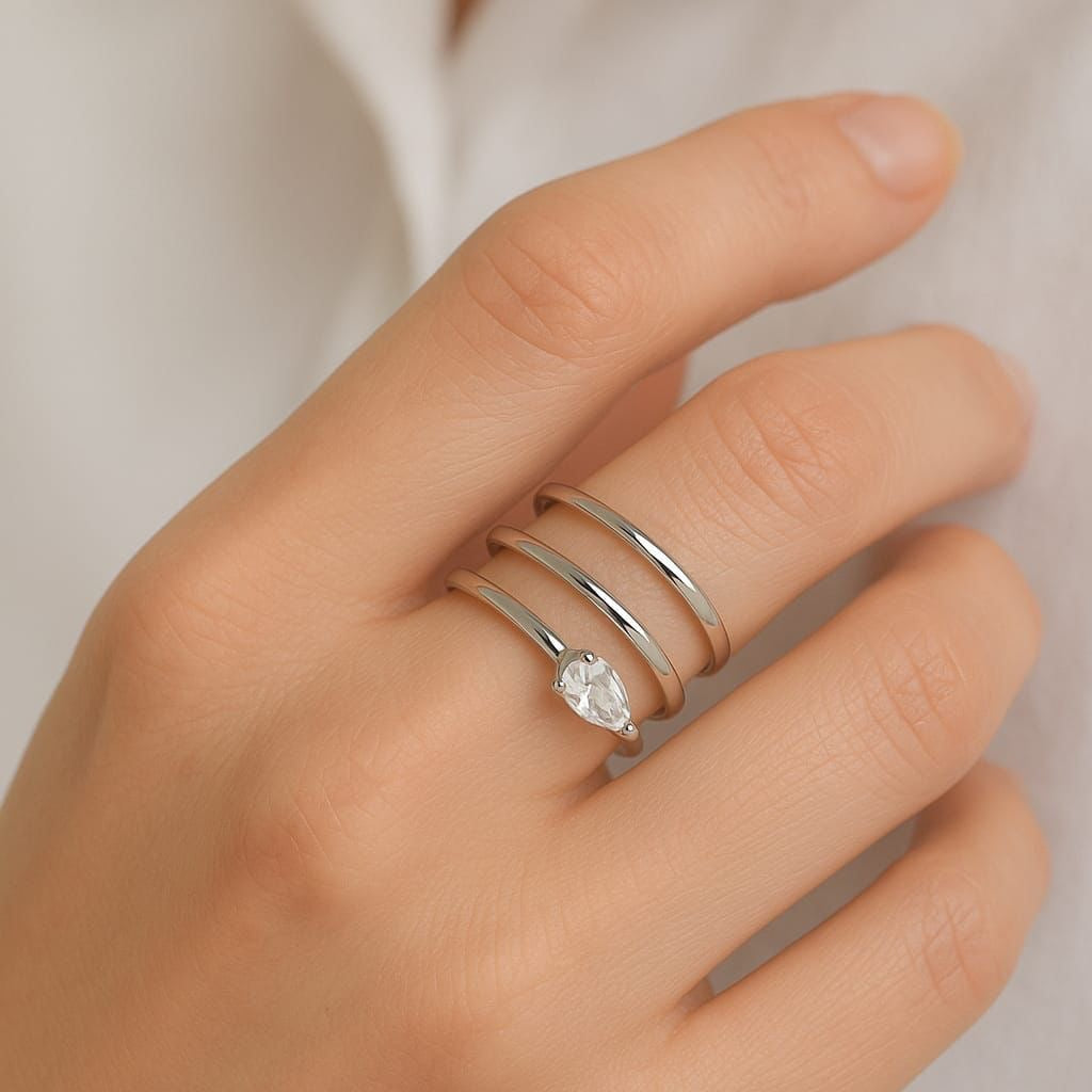 טבעת כסף מסובבת בעיצוב מיוחד עם זרקון נוצץ שמוסיף זוהר לכל מגע