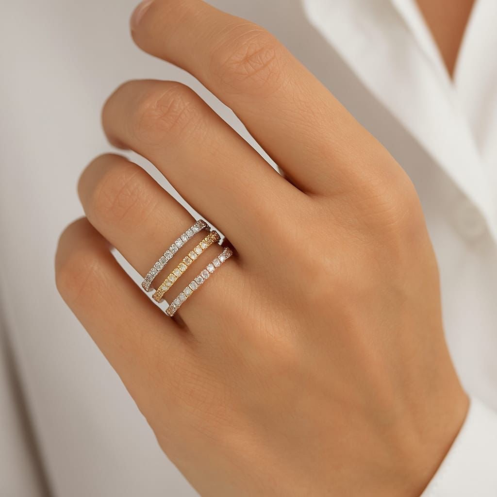 • טבעת בעיצוב נקי, עם זרקונים קיימת בכסף/זהב רוז גולד