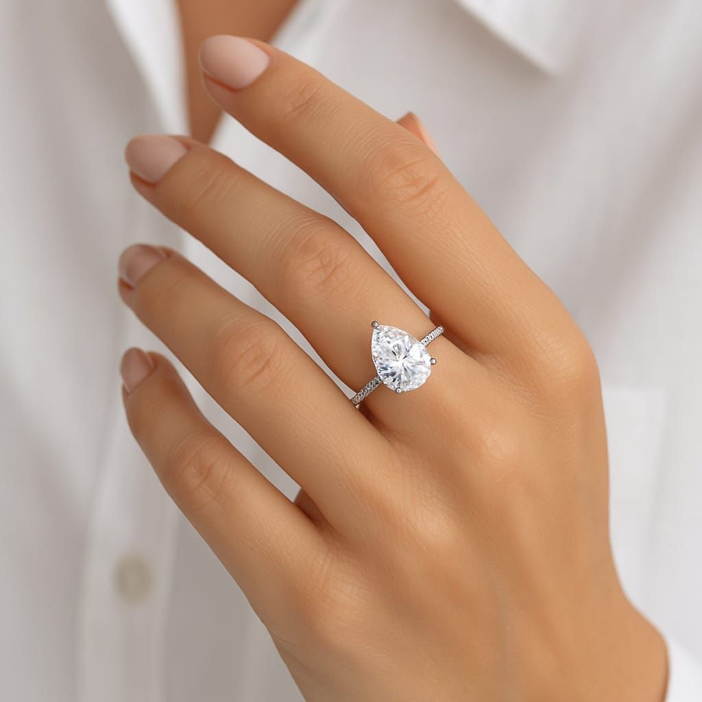 טבעת כסף יוקרתית עם אבן זירקון בצורת שקד, מעוטרת בזרקונים קטנים מסביב – שילוב של אלגנטיות ונוכחות מרשימה