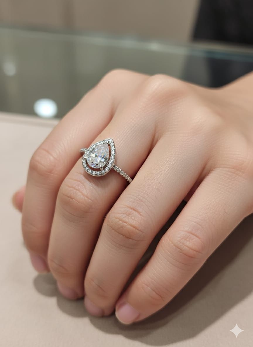טבעת כסף בחיתוך טיפה שילוב ייחודי ואלגנטי הצורה מדמה טיפה או דמעה נוצצת, סמל לנשיות, רומנטיקה ועוצמה.