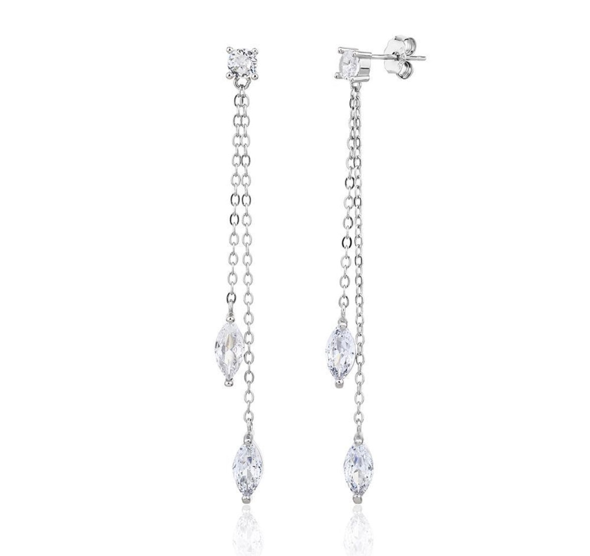העגילים יפיפיים - עגילי שרשרת עם אבני זרקון שקד נופלות, בעיצוב עדין ואלגנטי.