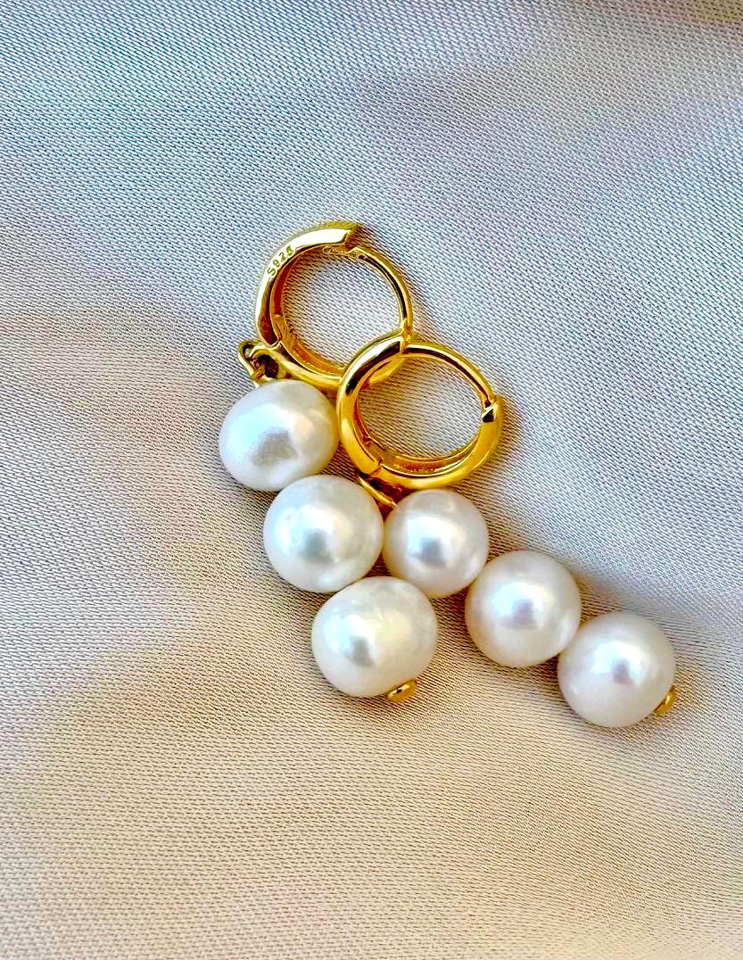עגיל ציפוי זהב עם פנינים נופלות – מראה אלגנטי וקלאסי עם טאצ’ מודרני