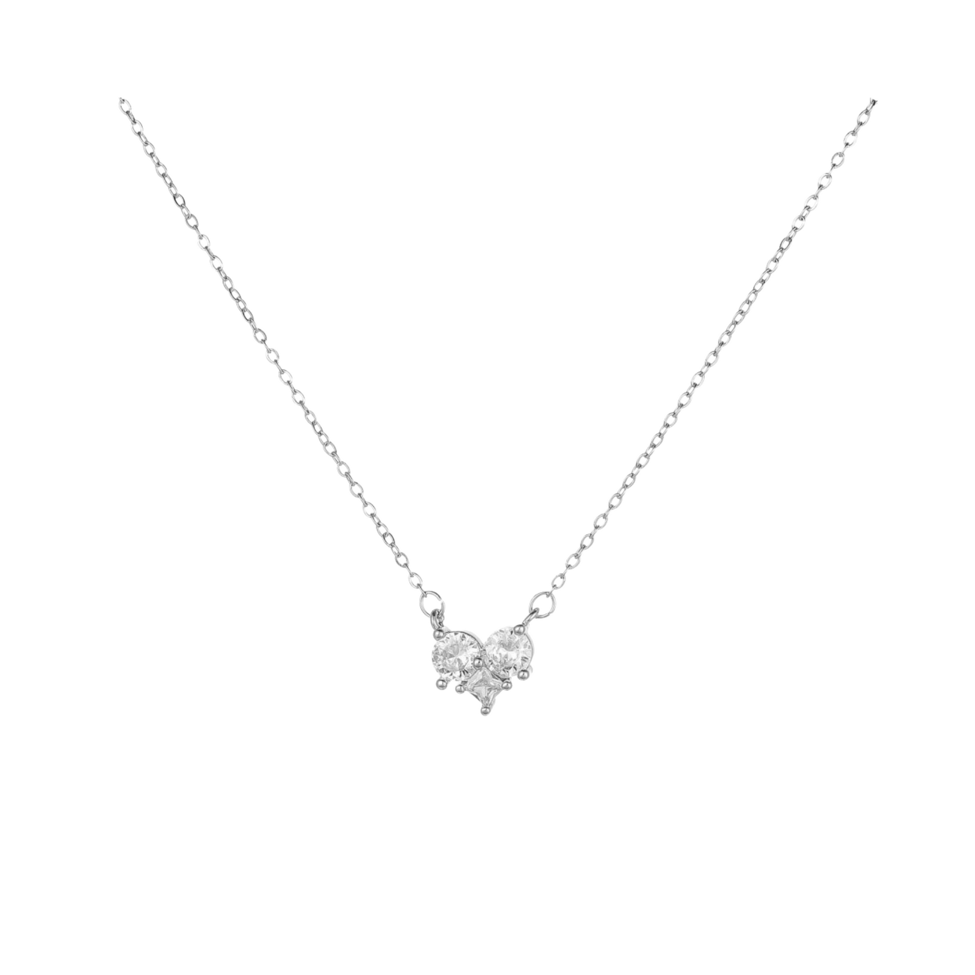 שרשרת בעיצוב לב עדין בכסף טהור משובץ בשלוש זירקונים מנצנצות