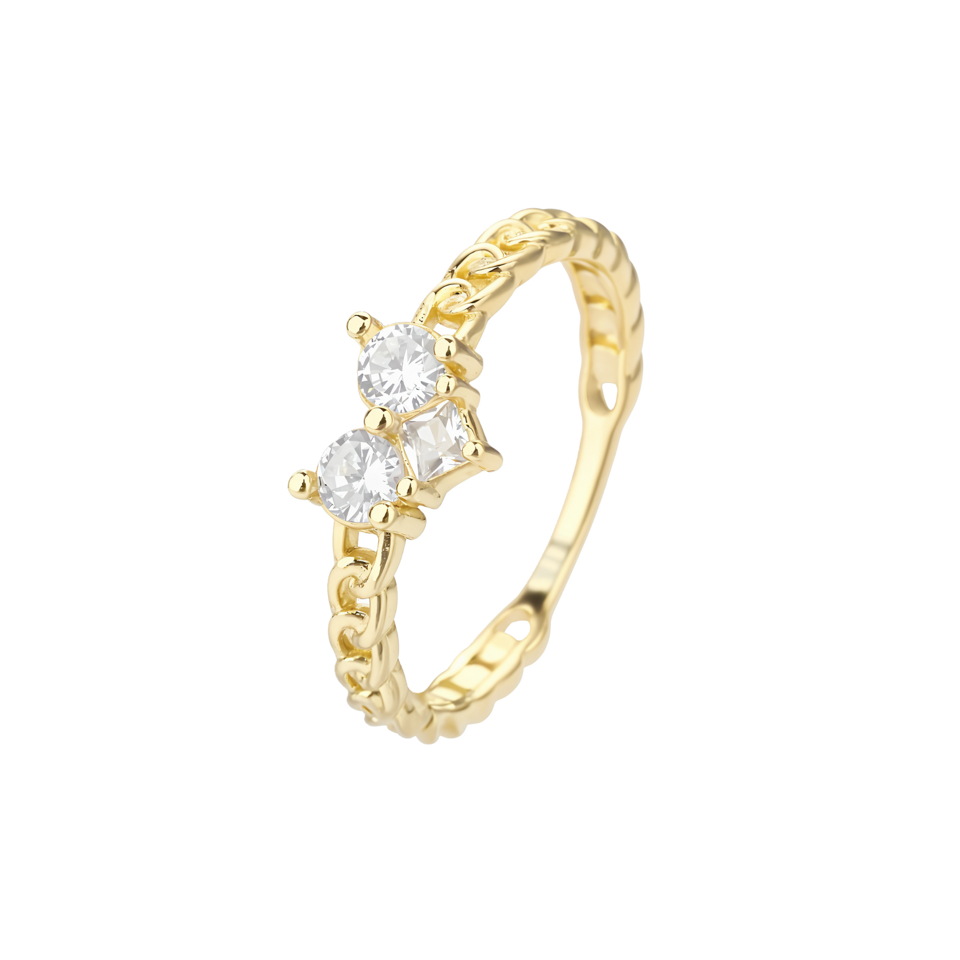טבעת ציפוי זהב 14 קארט 25 בעיצוב רומנטי ונשי, עם לב במרכזו – סמל לאהבה טהורה ונוכחת. שלושה יהלומים קטנים משובצים בלב, כמחווה לעבר, להווה ולעתיד – כל רגע יקר נשמר לנצח.