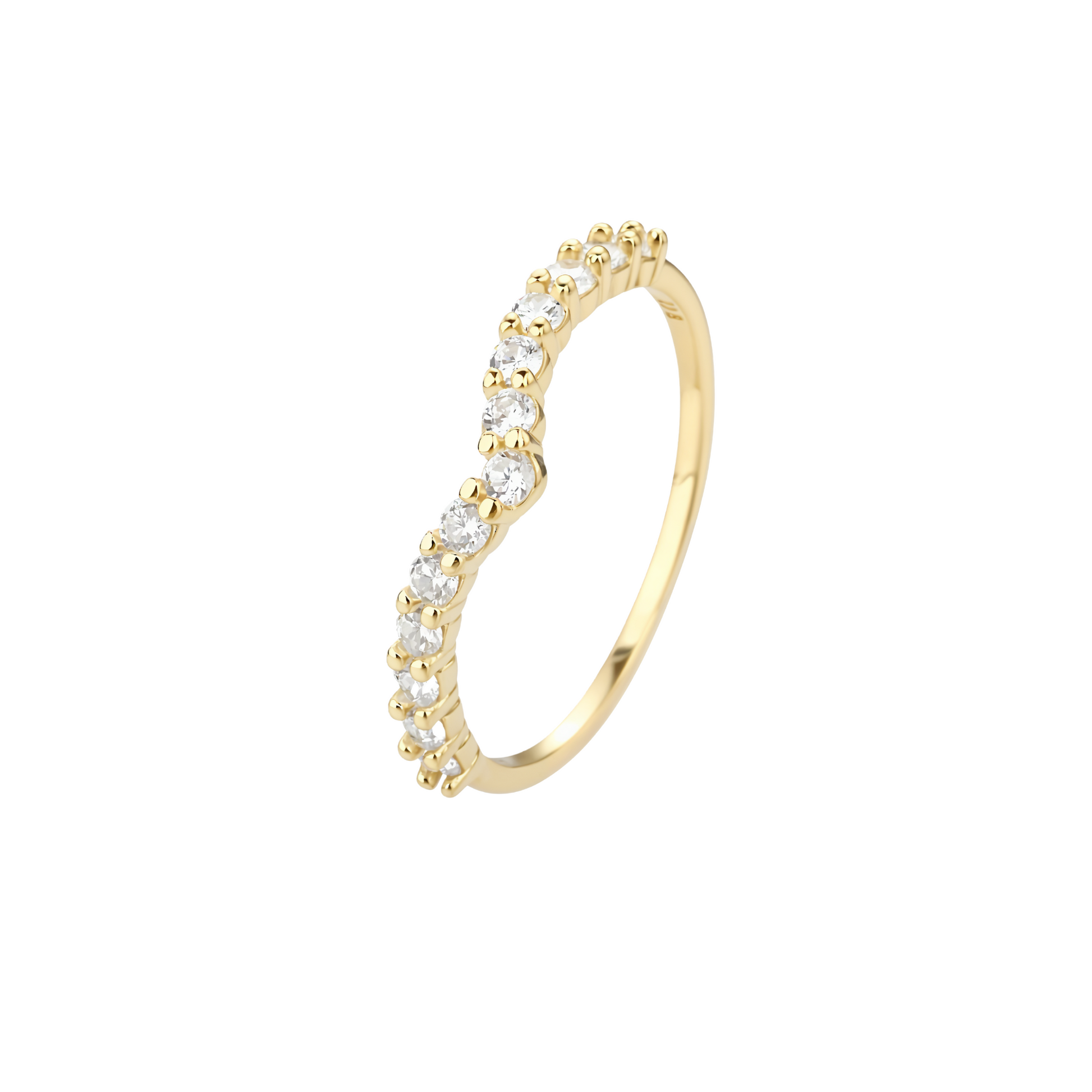 טבעת ציפוי זהב 14 קארט עדינה ואלגנטית, משובצת זרקונים קטנים לכל אורכה – מעצבת את האצבע בזווית מושלמת של סטייל ועוצמה.
