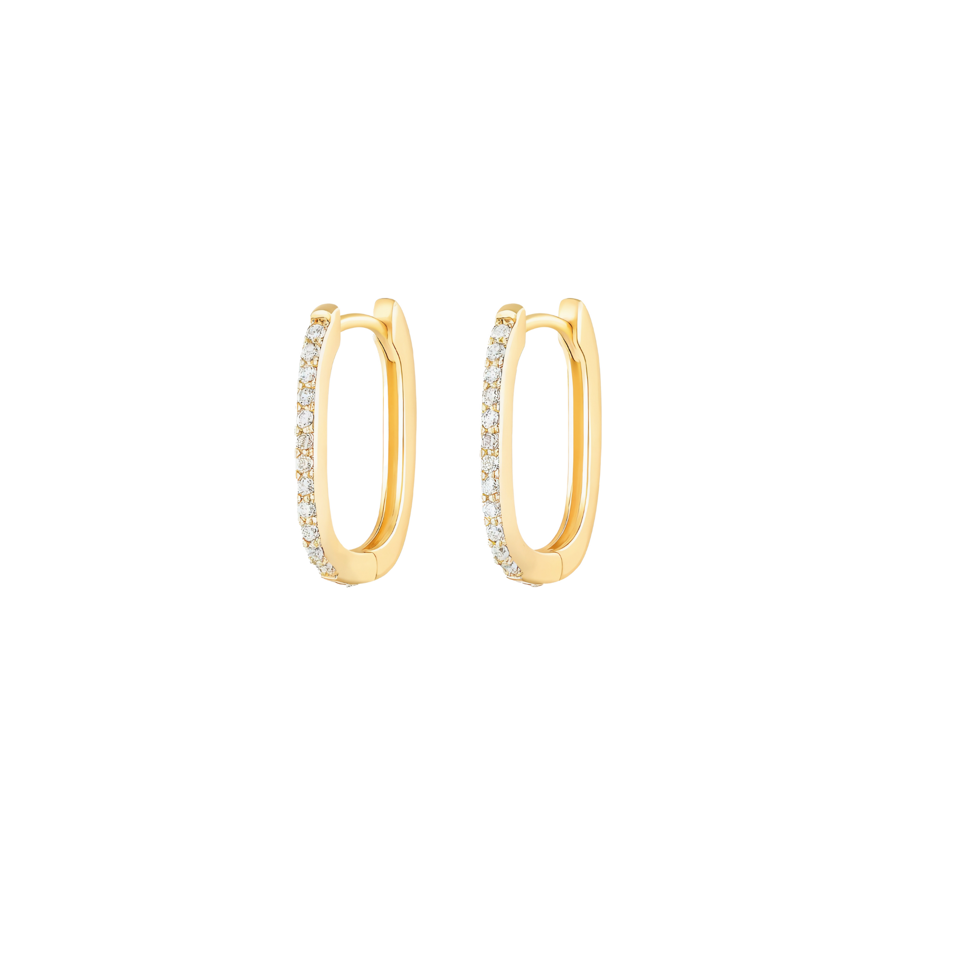 עגיל ציפוי זהב 14 קארט חישוק מרובע בעיצוב מודרני ונקי, משובץ זרקונים זוהרים