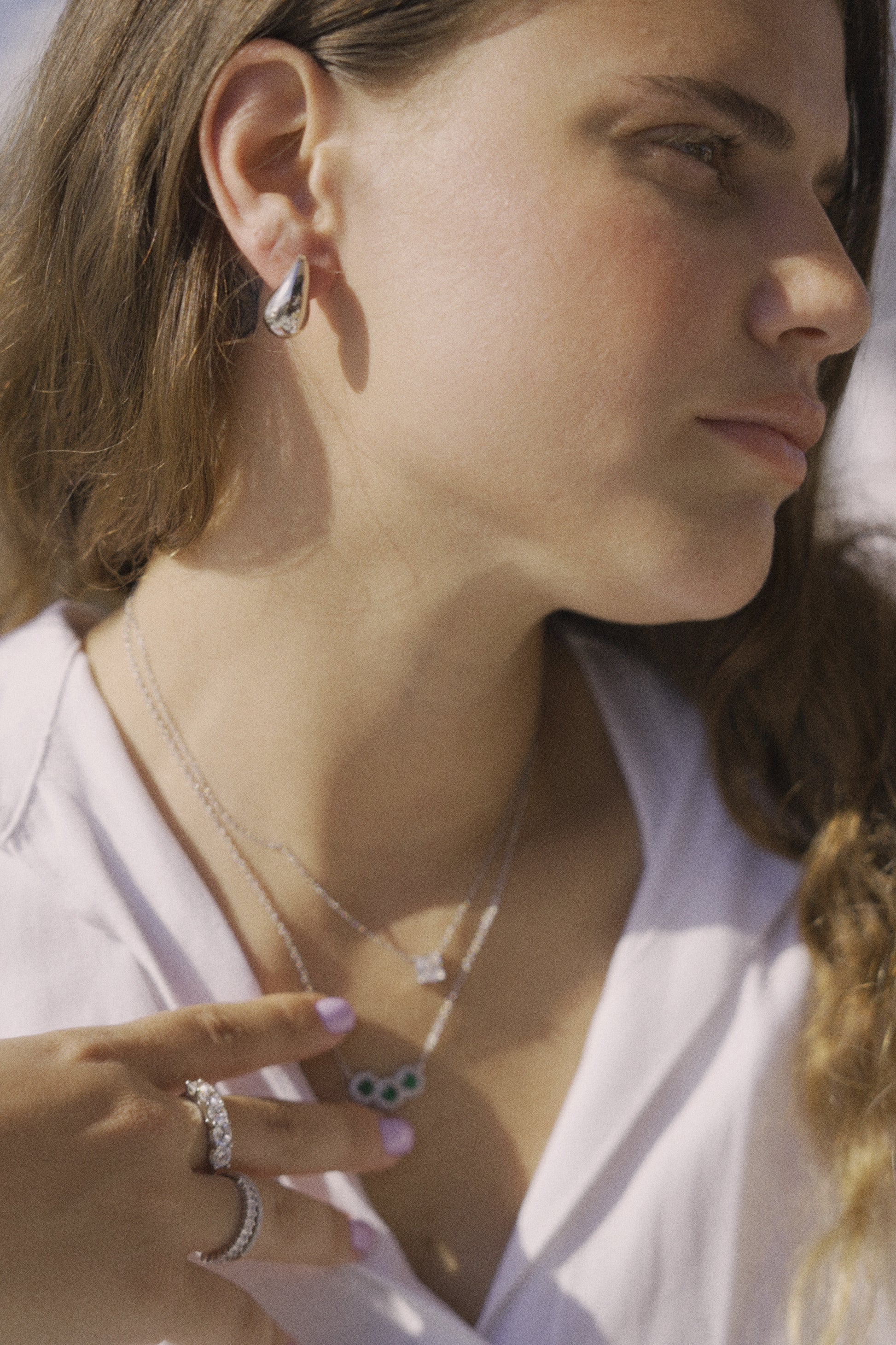 עגיל בצורת טיפה – טהור, שקט, מלא תנועה פנימית.