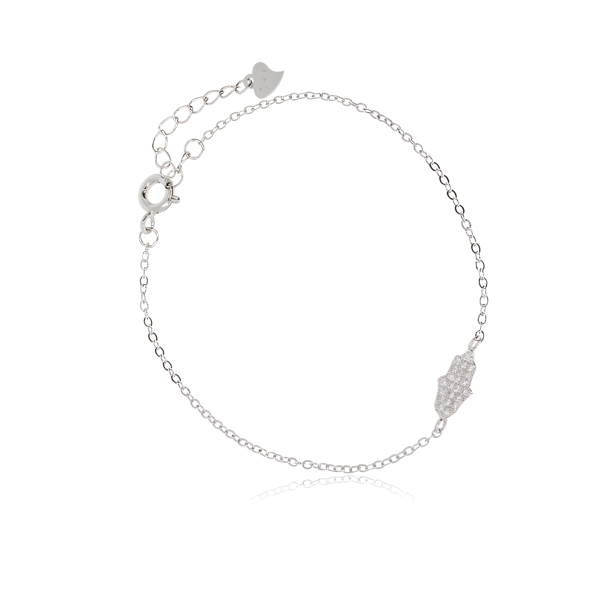 צמיד כסף  אלגנטי ועדין עם תליון חמסה משובץ באבני זרקון קטנות